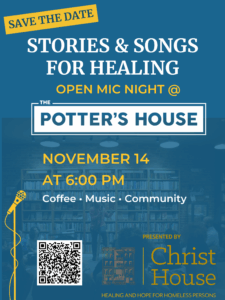 Have you been looking for an opportunity to connect with your neighbors or share your talents with the world? Then join us for an Open Mic Night Fundraiser at Potter’s House on Friday, November 14, 2025 from 6PM to 8PM. To purchase tickets (suggested donation: $15) and support our mission, please follow this link: Tickets Available […] More…